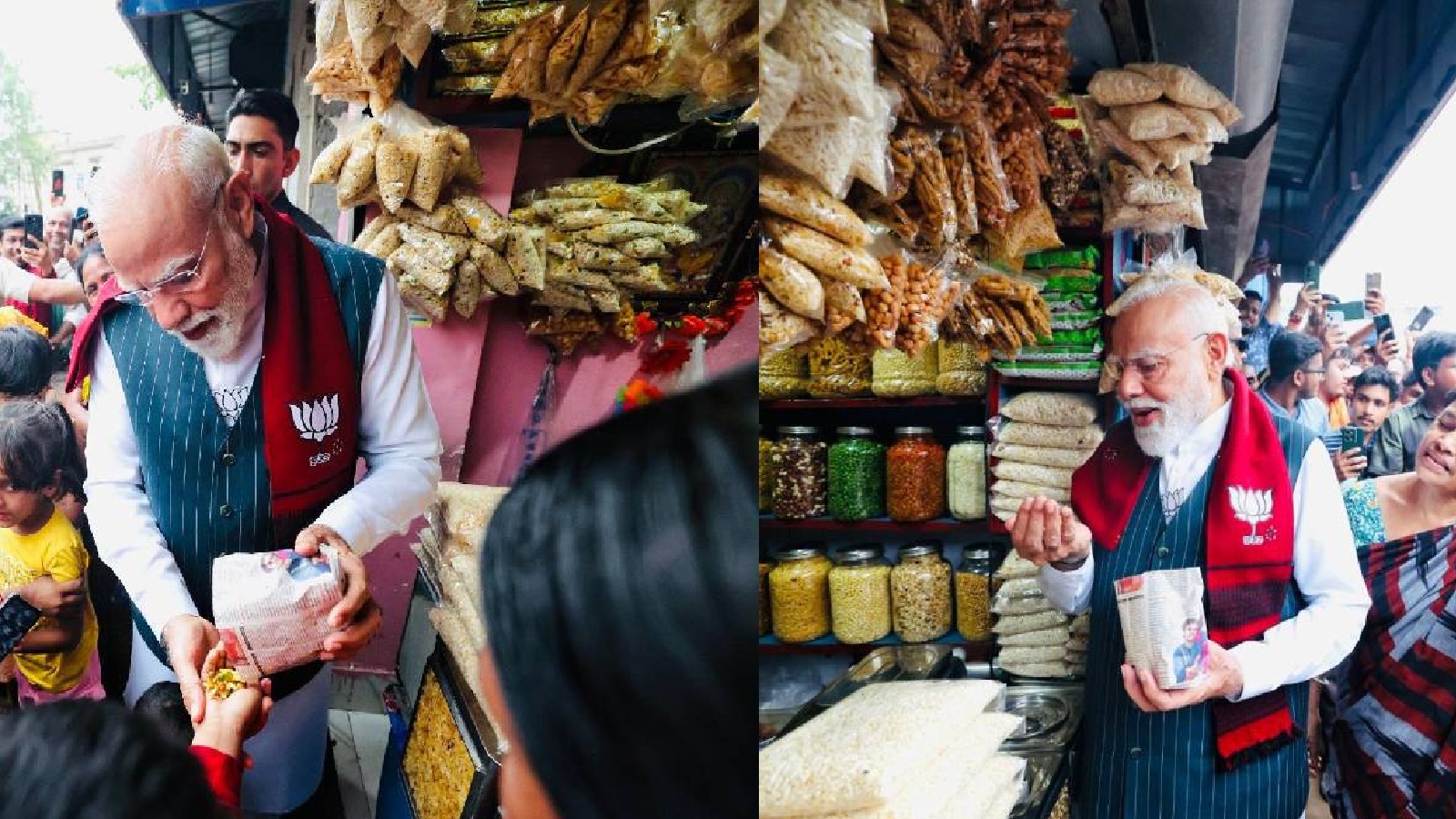 মুড়ি আছে কি না জিজ্ঞেস করতেই তিনি প্রথমে ঘাবড়ে গিয়েছিলেন। এরপর ১০ টাকার মুড়ি খান মোদি। মুড়ির টাকা নিতে না চাইলেও উনি জোর করে টাকাটা দিয়ে যান।