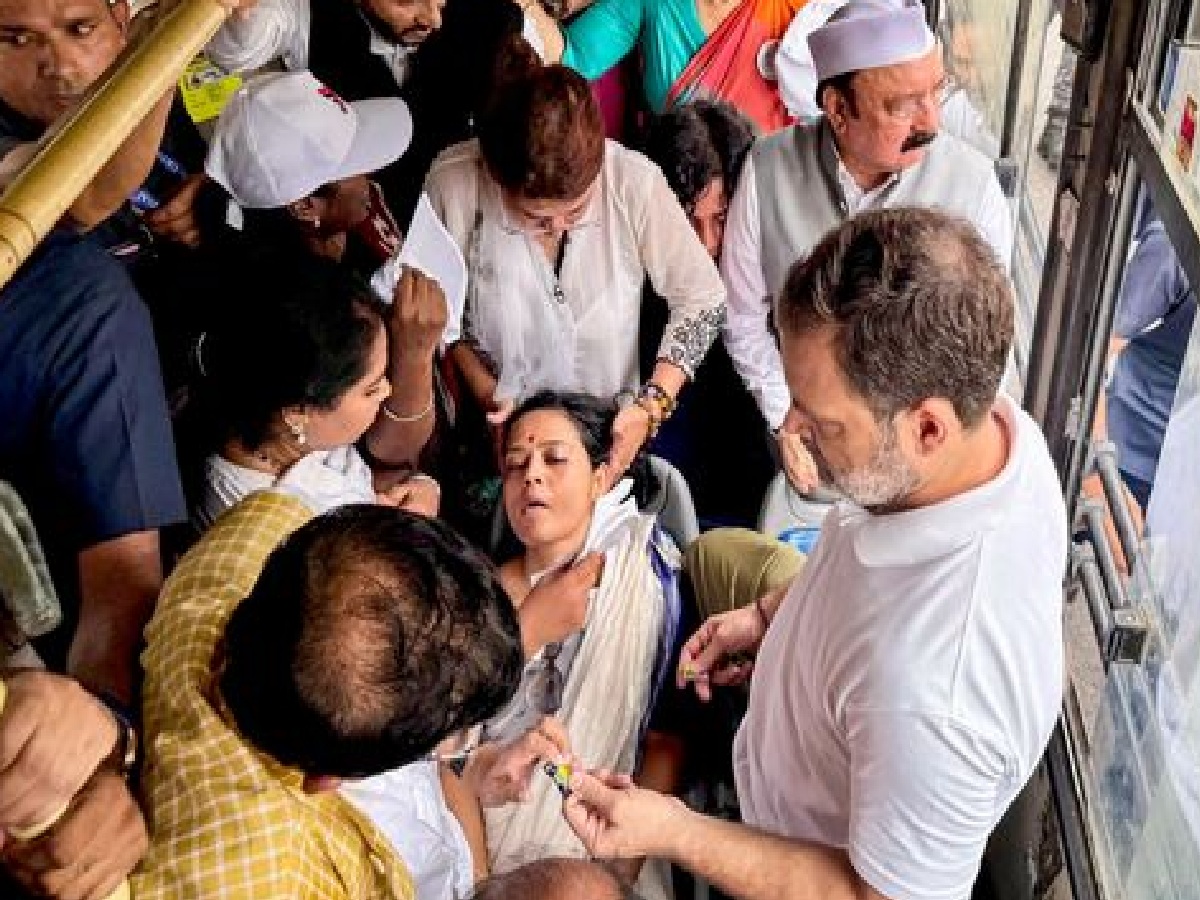 অসুস্থ মহুয়ার মাথায় জল দিতে দেখা যায় লোকসভার বিরোধী দলনেতা রাহুল গান্ধীকে। এদিকে, দিল্লি পুলিশের তরফে আটক করে বাসে তোলা হয়েছে রাহুল গান্ধী, প্রিয়াঙ্কা গান্ধী, মল্লিকার্জুন খাড়গে -সহ ১০০-এর বেশি সাংসদকে।