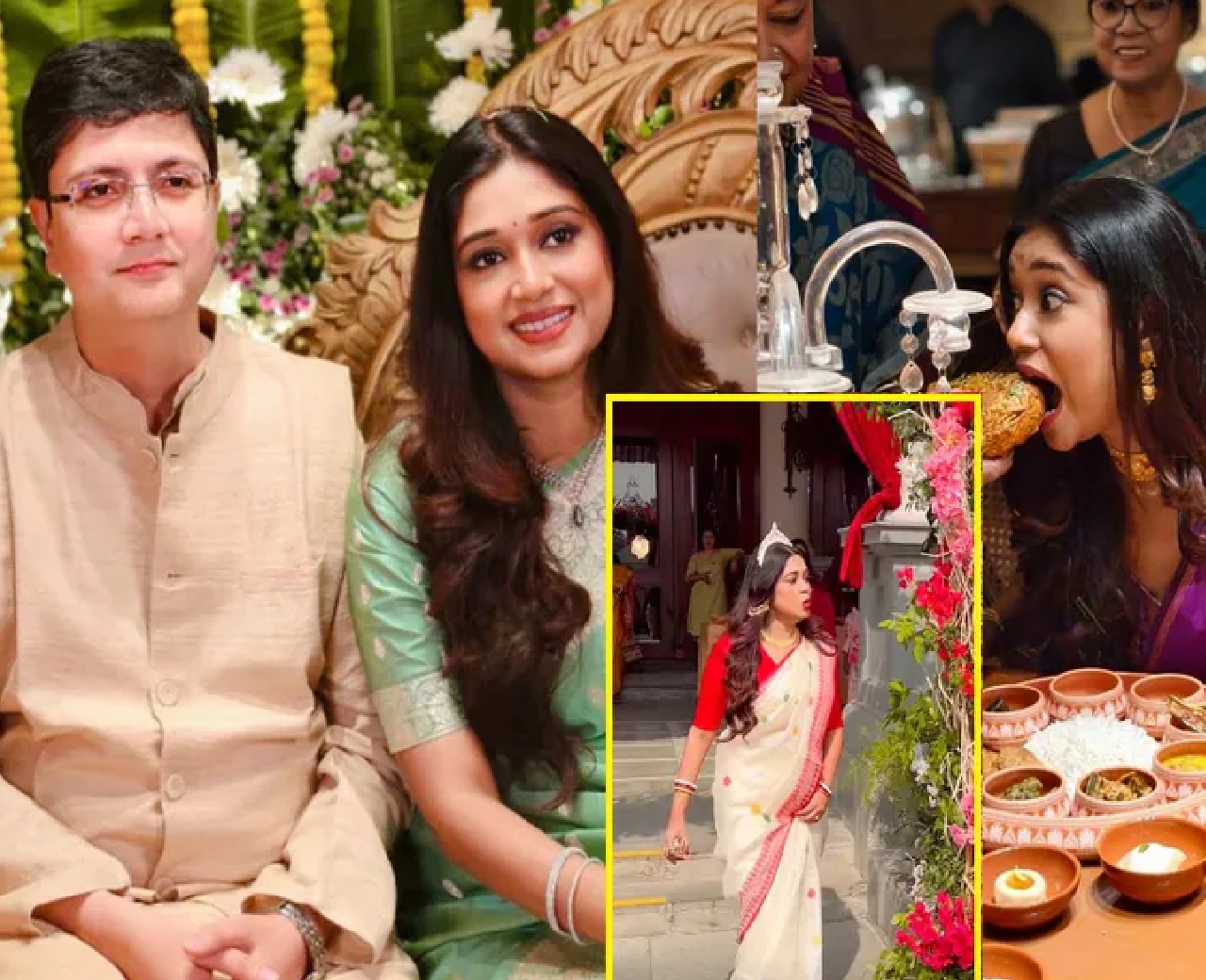 বিয়ের সকালে লাল পাড় সাদা শাড়িতে ধরা দিলেন অন্তরা। মাথায় শোলার মুকুট। গায়ে সোনার গয়না। হাতে শাঁখা-পলা। বরের বাড়ি থেকে গায়ে হলুদের তত্ত্ব আসতেই নিজে বেরিয়ে আসেন বাইরে। সবটা তদারকি করলেন স্বয়ং কনে।