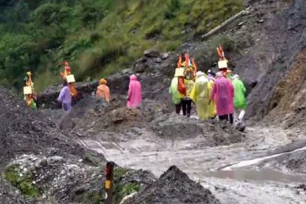 উত্তরাখণ্ডের উত্তরকাশী জেলায় ভয়াবহ মেঘভাঙা বৃষ্টির জেরে হড়পা বান।