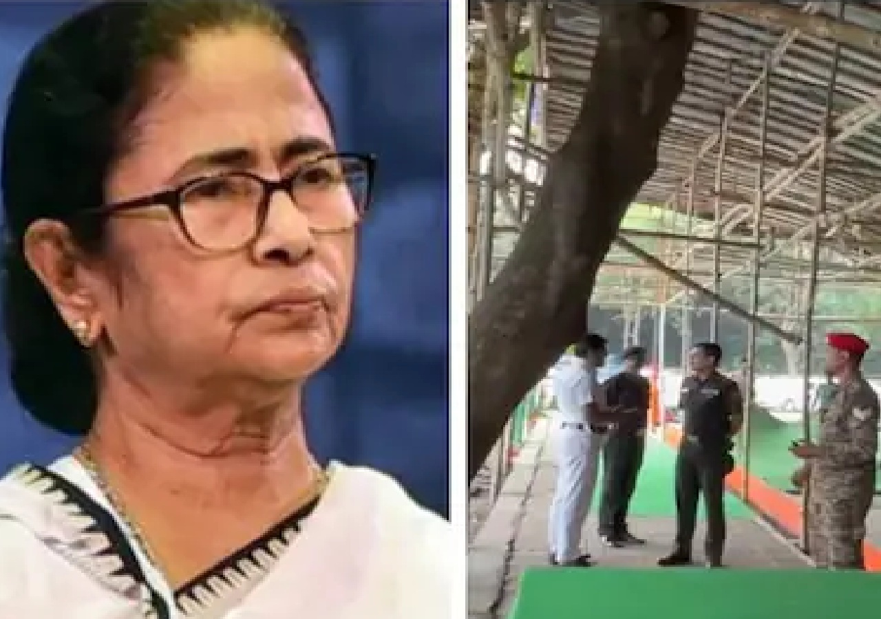 মমতা অভিযোগ করেন, ‘মঞ্চ ভেঙে দেওয়া হয়েছে, আমাদের মাইকের কানেকশন কেটে দিয়েছে। স্টেজ ভেঙে দিয়েছে, আপনারা দেখতে পাচ্ছেন। প্যান্ডেল আর্মিকে দিয়ে খুলিয়েছে। আমার আর্মির বিরুদ্ধে কোনও ক্ষোভ নেই। কারণ, আমরা সেনাকে নিয়ে গর্বিত। কিন্তু সেনাকে যখন বিজেপির কথায় চলতে হয়, তখন দেশটা কোথায় যায়, তা নিয়ে সন্দেহ জাগে!’